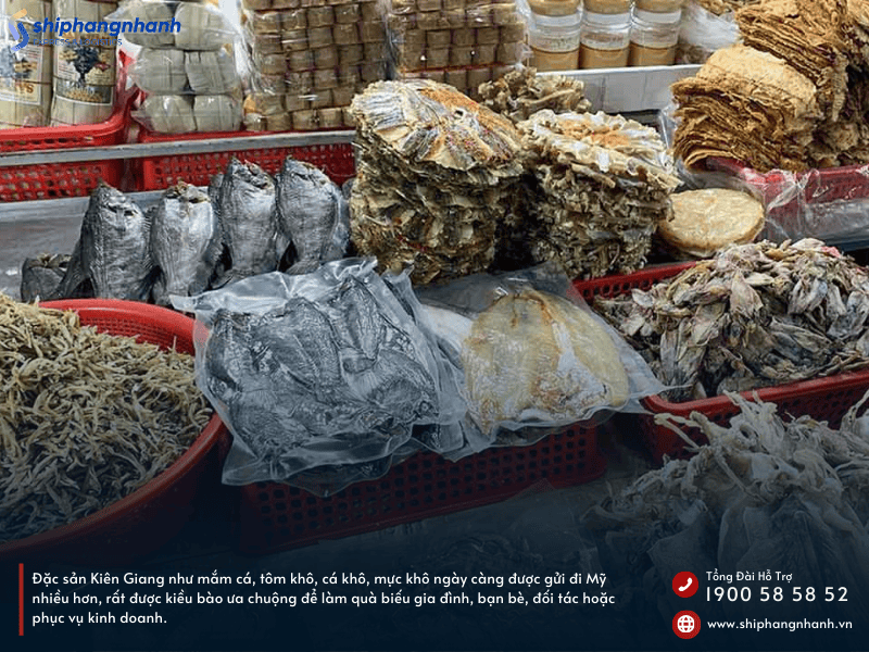 Hiện nay, nhu cầu gửi hàng từ các tỉnh miền tây như Kiên Giang đi Mỹ đang gia tăng đáng kể. Nguyên do chủ yếu là do cộng đồng người Việt tại Mỹ ngày càng đông đảo, kiều bào ở hải ngoại rất ưa chuộng các đặc sản quê hương, điển hình là nước mắm Phú Quốc, Nấm tràm, Bánh thốt nốt, Tiêu Phú Quốc, bên cạnh đó là các loại hải sản khô như tôm khô, mực khô, khô cá thu, khô cá muối tiêu đường…